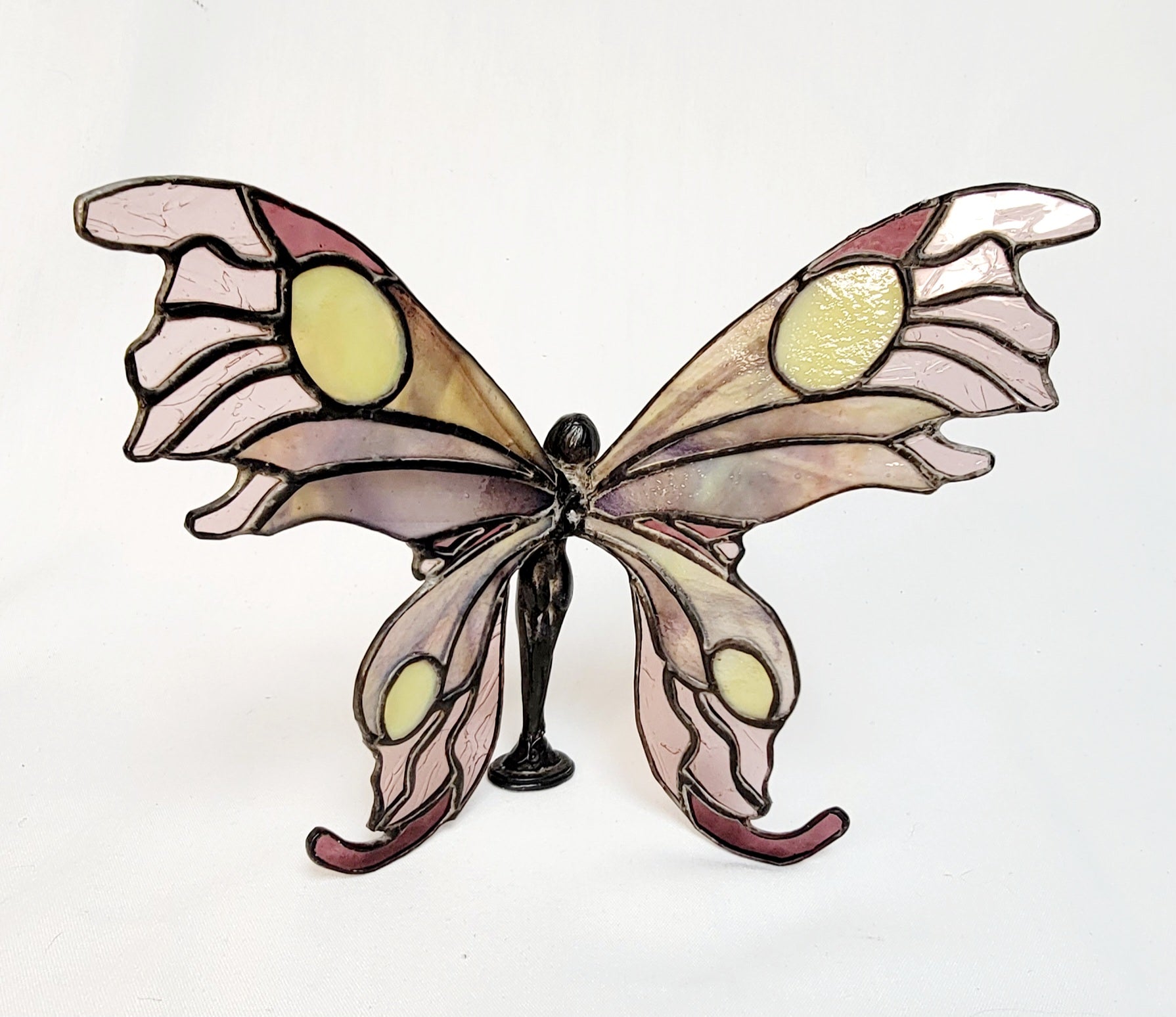 This Butterfly Lady #2 Stained Glass Figurine is a beautiful piece of art, designed and created by the renowned artist Michael Ziegler. Each figurine is handmade and unique, with fine details that bring this whimsical lady to life. Perfect for a collector or as a gift, bring a touch of beauty into your home with this exquisite stained glass figure.