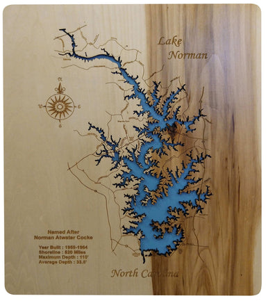 This is a beautiful, detailed, laser engraved and precision cut map, including lake information such as surface area, elevation and maximum depth.