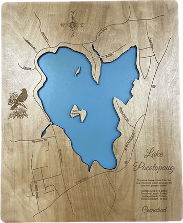 Lake Pacotopdug, Connecticut - Laser Engraved Wood Map Overflow Sale Special