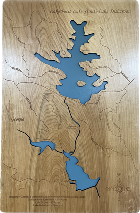 Lake Petit, Lake Sconti and Lake Disharoon - Laser Engraved Wood Map Overflow Sale Special