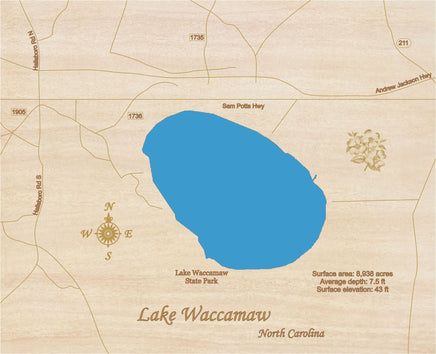 This is a beautiful, detailed, laser engraved and precision cut map, including lake information such as surface area, elevation and maximum depth.