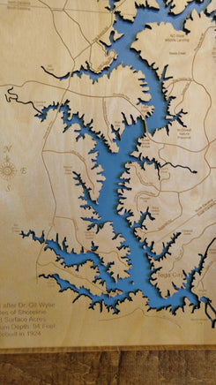 This is a beautiful, detailed, laser engraved and precision cut map, including lake information such as surface area, elevation and maximum depth.