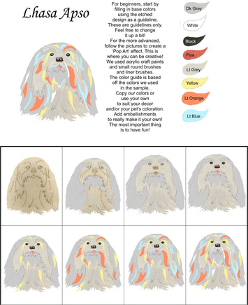 Each kit includes a wood cutout (average 12" wide) with painting guidelines lightly lasered in the wood as well as a step-by-step photo instruction sheet to help you along the way. Color guides are also shown in the instructions if you would like to use the exact colors as the sample images, however we suggest adding your own custom colors to make it your own! Also included is a wood keyhole hanger and spacer that can be easily glued to the back with wood glue. These give the piece a "floating" stand-out effect when hung on the wall.