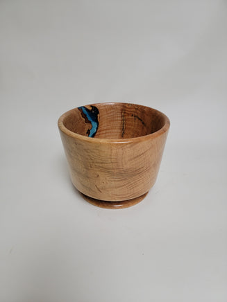 Beautiful wood-turned bowl made from Maple, with turquoise epoxy and signed by the artist, Ken Minyard.