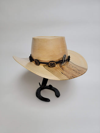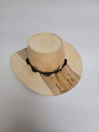 Beautiful wood-turned hat made from Maple signed and numbered by the artists, Linda and Brian Butler. Make a fashion statement in this unique hat!