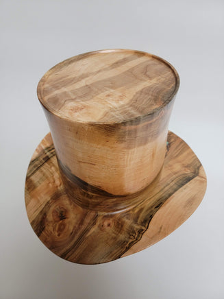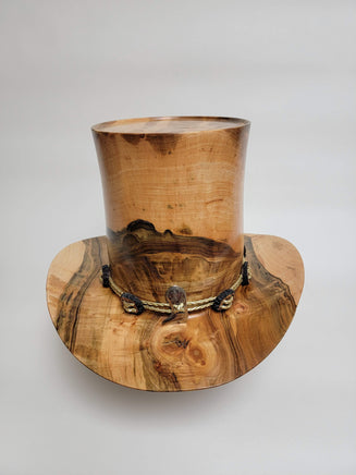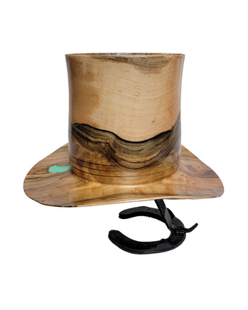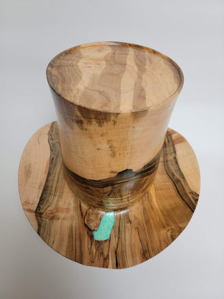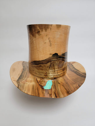 Beautiful wood-turned hat made from Maple with Turquoise. Make a fashion statement in this unique hat!
