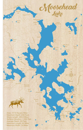This is a beautiful, detailed, laser engraved and precision cut map, including lake information such as surface area, elevation and maximum depth.
