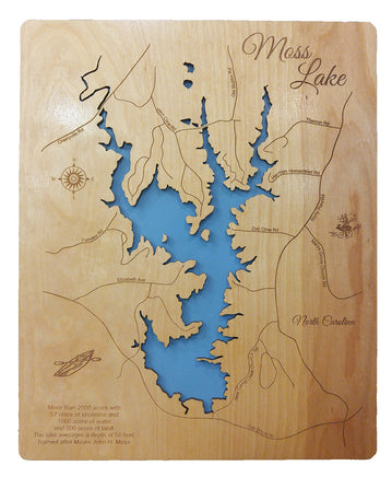 This is a beautiful, detailed, laser engraved and precision cut map, including lake information such as surface area, elevation and maximum depth.