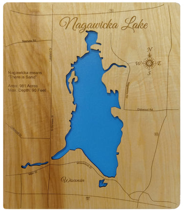 This is a beautiful, detailed, laser engraved and precision cut map, including lake information such as surface area, elevation and maximum depth.