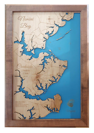 Our maps are made from beautiful birch plywood. Natural variances in the wood grain ensure a unique work of art. Once the map is cut, it is hand sanded multiple times, mounted on a blue board to highlight the water, and given a clear coat for a lustrous wood shine. Proudly made in the USA by American workers in an American owned business.