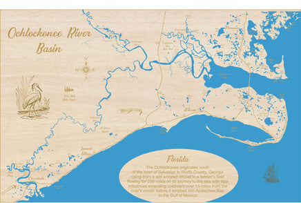 - The Ochlockonee originates south of the town of Sylvester in Worth County, Georgia rising from a wet wooded thicket in a farmer’s field flowing for 206 miles on its journey to the sea with tidal influences extending upstream over 15 miles from the river's mouth before it empties into Apalachee Bay, in the Gulf of Mexico.