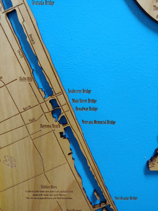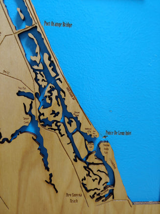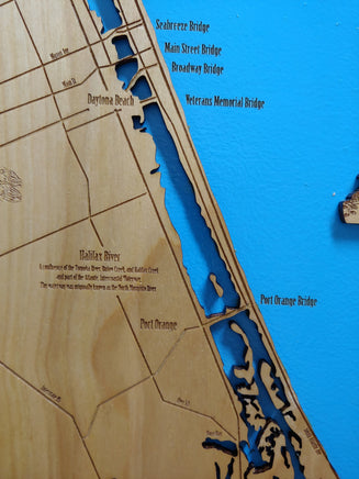 Our maps are made from beautiful birch plywood. Natural variances in the wood grain ensure a unique work of art. Once the map is cut, it is hand sanded multiple times, mounted on a blue board to highlight the water, and given a clear coat for a lustrous wood shine. Proudly made in the USA by American workers in an American owned business.