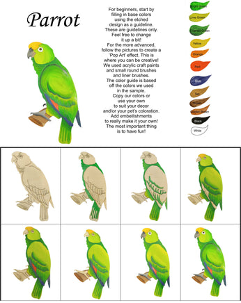 Each kit includes a wood cutout (average 12" wide) with painting guidelines lightly lasered in the wood as well as a step-by-step photo instruction sheet to help you along the way. Color guides are also shown in the instructions if you would like to use the exact colors as the sample images, however we suggest adding your own custom colors to make it your own! Also included is a wood keyhole hanger that easily attaches to the back with double sided tape, (tape included, minor assembly required). These give the piece a "floating" stand-out effect when hung on the wall. These give the piece a "floating" stand-out effect when hung on the wall.