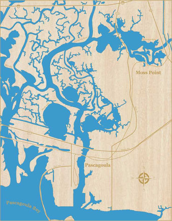 Pascagoula River, Mississippi - laser cut wood map