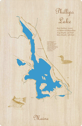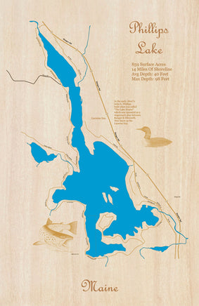 This is a beautiful, detailed, laser engraved and precision cut map, including lake information such as surface area, elevation and maximum depth.