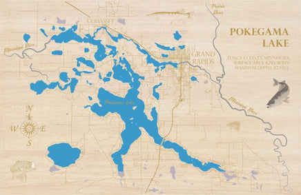 This is a beautiful, detailed, laser engraved and precision cut map, including lake information such as surface area, elevation and maximum depth.