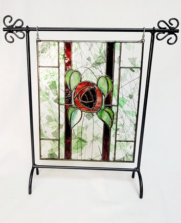 Discover the one-of-a-kind art of Michael Ziegler with the beautiful Rose Window stained glass design. This unique piece features an intricate array of color and texture, crafted with the highest quality materials. Make a statement in any room with this stunning showpiece.