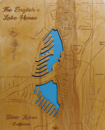 Silver Lakes in Helendale, California - Laser Cut Wood Map