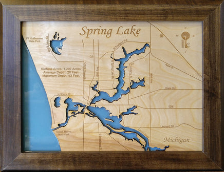 - Spring Lake is a 1,300-acre bayou in west central Michigan that flows into the Grand River. At 260 miles the Grand River is Michigan's longest river. Its main stream rises in Hillsdale County and flows through Ionia to Grand Rapids and to its outlet at Grand Haven on Lake Michigan.
