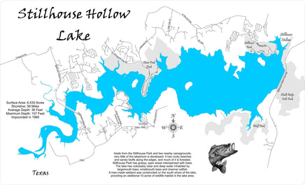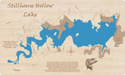 This is a beautiful, detailed, laser engraved and precision cut map, including lake information such as surface area, elevation and maximum depth.