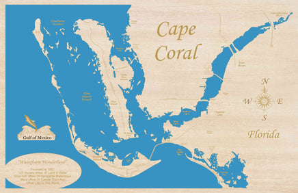 Our maps are made from beautiful birch plywood. Natural variances in the wood grain ensure a unique work of art. Once the map is cut, it is hand sanded multiple times, mounted on a blue board to highlight the water, and given a clear coat for a lustrous wood shine. Proudly made in the USA by American workers in an American owned business.