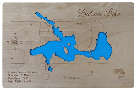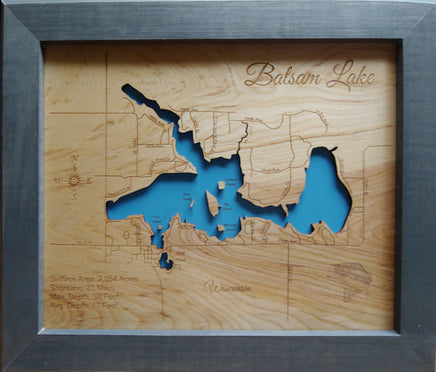 This is a beautiful, detailed, laser engraved and precision cut map, including lake information such as surface area, elevation and maximum depth.