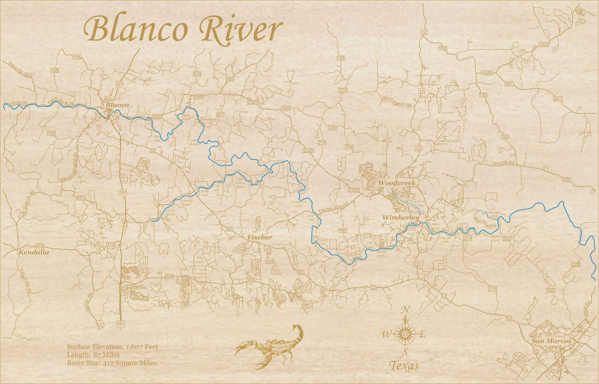 The primary source for the river is a series of springs in northern Kendall County. The river flows generally eastward for 87 miles (140 km) through Kendall County, Blanco County and Hays County. Near San Marcos, it takes a southerly turn and joins with the San Marcos River.