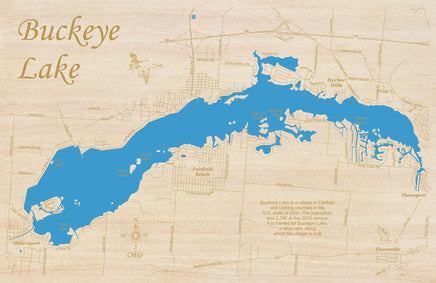 Buckeye Lake, Ohio - Laser Cut Wood Map