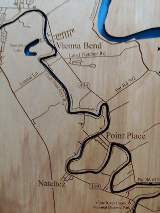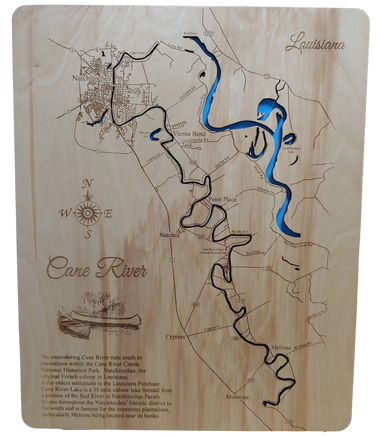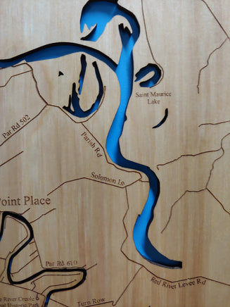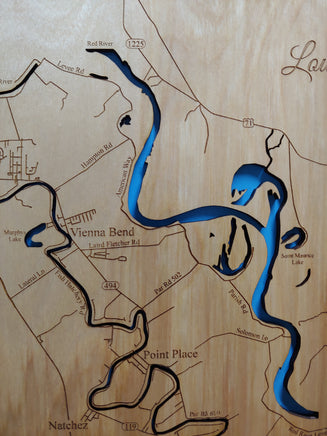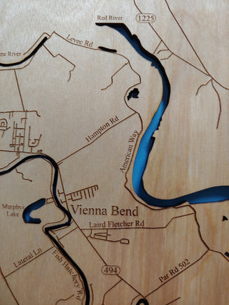 Our maps are made from beautiful birch plywood. Natural variances in the wood grain ensure a unique work of art. Once the map is cut, it is hand sanded multiple times, mounted on a blue board to highlight the water, and given a clear coat for a lustrous wood shine. Proudly made in the USA by American workers in an American owned business.