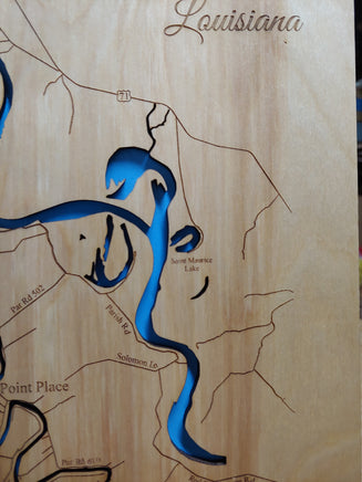 This is a beautiful, detailed, laser engraved and precision cut map, including lake information such as surface area, elevation and maximum depth.