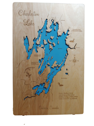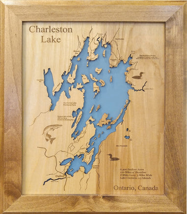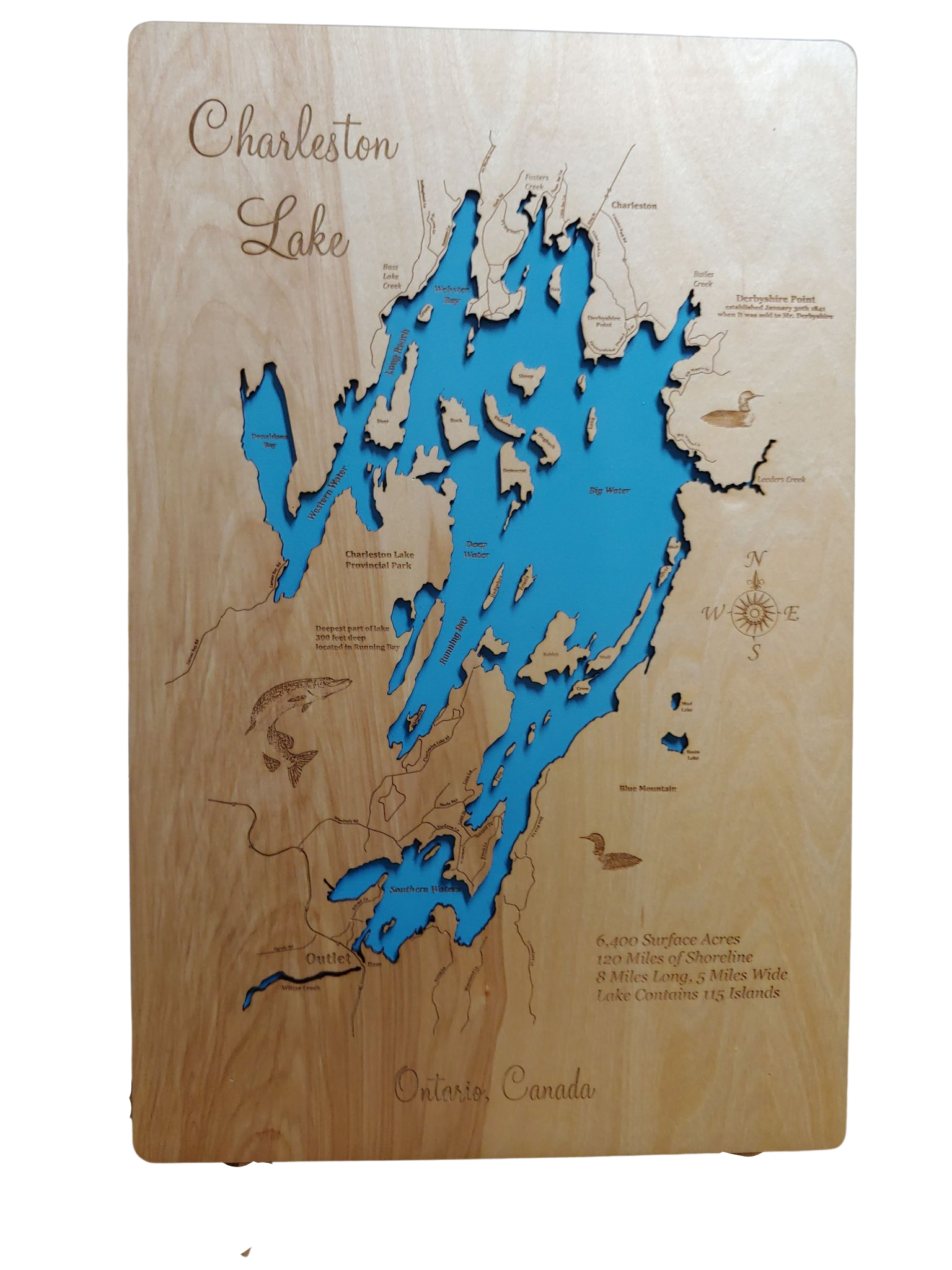 This is a beautiful, detailed, laser engraved and precision cut map, including lake information such as surface area, elevation and maximum depth.