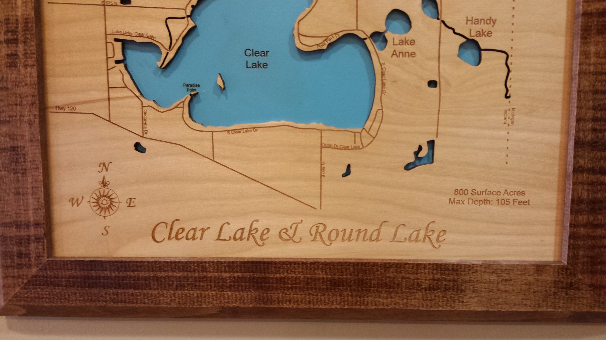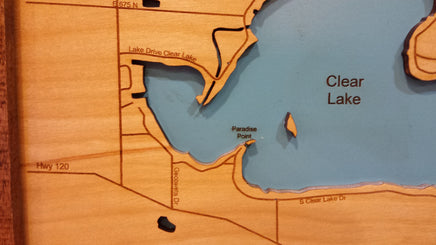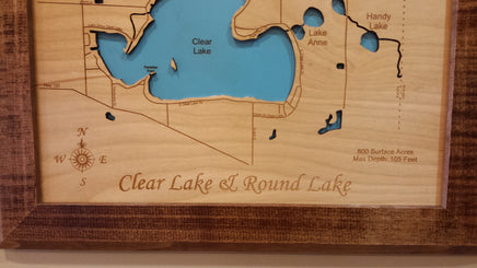 Clear Lake and Round Lake, IN - Laser Cut Wood Map
