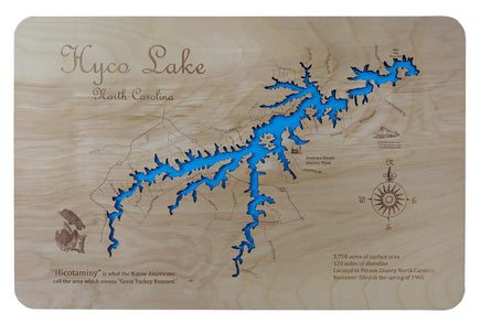 This is a beautiful, detailed, laser engraved and precision cut map, including lake information such as surface area, elevation and maximum depth.
