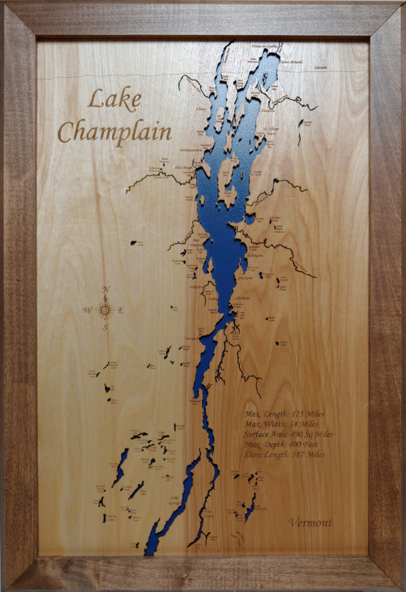 Our maps are made from beautiful birch plywood. Natural variances in the wood grain ensure a unique work of art. Once the map is cut, it is hand sanded multiple times, mounted on a blue board to highlight the water, and given a clear coat for a lustrous wood shine. Proudly made in the USA by American workers in an American owned business.