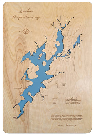 This is a beautiful, detailed, laser engraved and precision cut map, including lake information such as surface area, elevation and maximum depth.