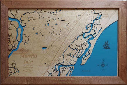 Our maps are made from beautiful birch plywood. Natural variances in the wood grain ensure a unique work of art. Once the map is cut, it is hand sanded multiple times, mounted on a blue board to highlight the water, and given a clear coat for a lustrous wood shine. Proudly made in the USA by American workers in an American owned business.
