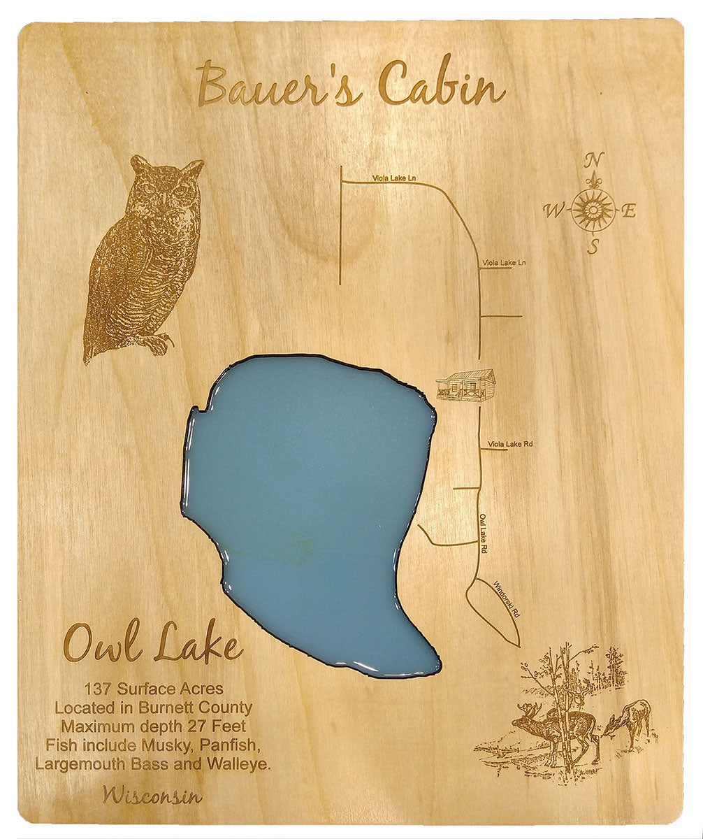 This is a beautiful, detailed, laser engraved and precision cut map, including lake information such as surface area, elevation and maximum depth.
