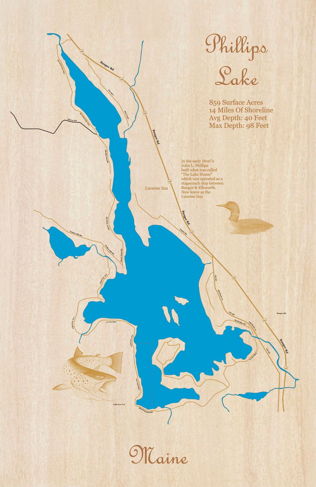 - In the early 1800’s John L. Phillips build what was called “The Lake House” which was operated as a stagecoach stop between Bangor & Ellsworth, now known as the Lucerne Inn.