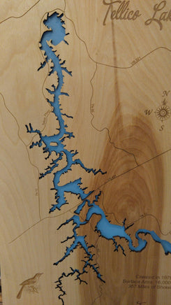 This is a beautiful, detailed, laser engraved and precision cut map, including lake information such as surface area, elevation and maximum depth.