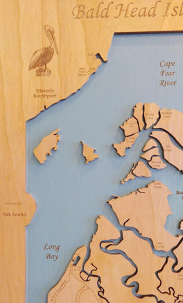 Our maps are made from beautiful birch plywood. Natural variances in the wood grain ensure a unique work of art. Once the map is cut, it is hand sanded multiple times, mounted on a blue board to highlight the water, and given a clear coat for a lustrous wood shine. Proudly made in the USA by American workers in an American owned business.