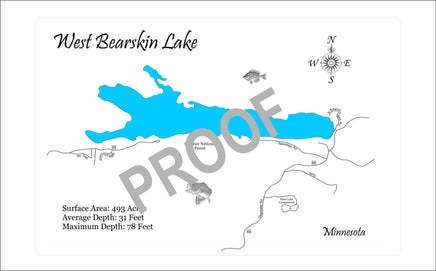 - Lake Name, Compass Rose and points of interest laser engraved into the map face