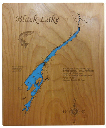 This is a beautiful, detailed, laser engraved and precision cut map, including lake information such as surface area, elevation and maximum depth.