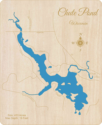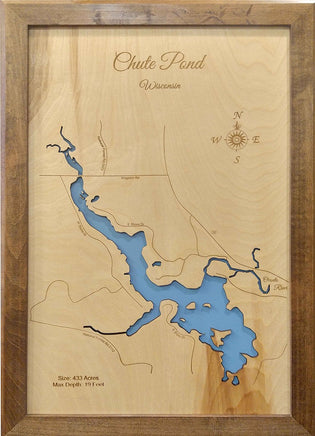 This is a beautiful, detailed, laser engraved and precision cut map, including lake information such as surface area, elevation and maximum depth.
