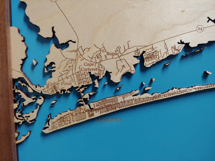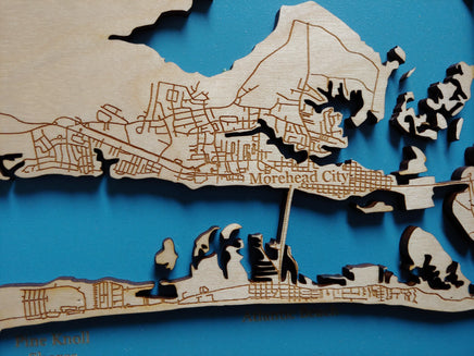 Our maps are made from beautiful birch plywood. Natural variances in the wood grain ensure a unique work of art. Once the map is cut, it is hand sanded multiple times, mounted on a blue board to highlight the water, and given a clear coat for a lustrous wood shine. Proudly made in the USA by American workers in an American owned business.