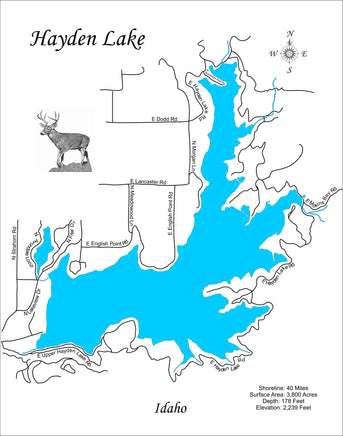 This is a beautiful, detailed, laser engraved and precision cut map, including lake information such as surface area, elevation and maximum depth.