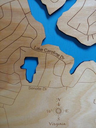 Our maps are made from beautiful birch plywood. Natural variances in the wood grain ensure a unique work of art. Once the map is cut, it is hand sanded multiple times, mounted on a blue board to highlight the water, and given a clear coat for a lustrous wood shine. Proudly made in the USA by American workers in an American owned business.