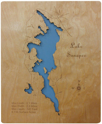 This is a beautiful, detailed, laser engraved and precision cut map, including lake information such as surface area, elevation and maximum depth.
