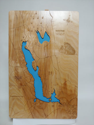 This is a beautiful, detailed, laser engraved and precision cut map, including lake information such as surface area, elevation and maximum depth.