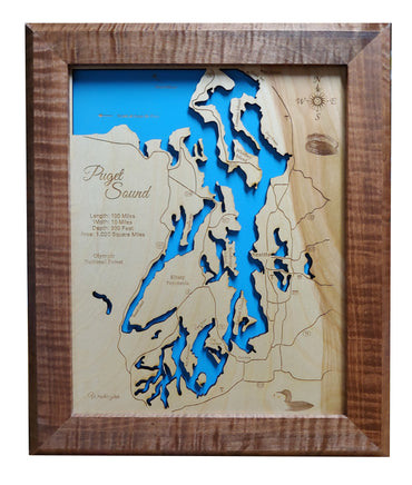 Our maps are made from beautiful birch plywood. Natural variances in the wood grain ensure a unique work of art. Once the map is cut, it is hand sanded multiple times, mounted on a blue board to highlight the water, and given a clear coat for a lustrous wood shine. Proudly made in the USA by American workers in an American owned business.