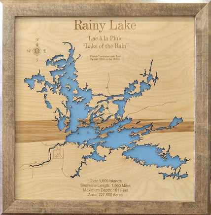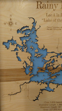 This is a beautiful, detailed, laser engraved and precision cut map, including lake information such as surface area, elevation and maximum depth.